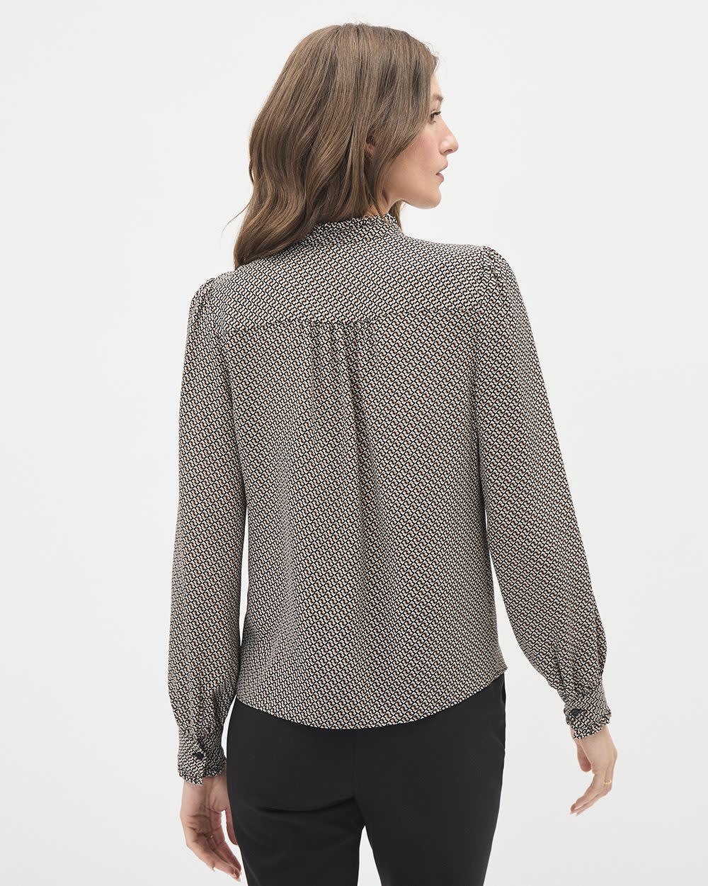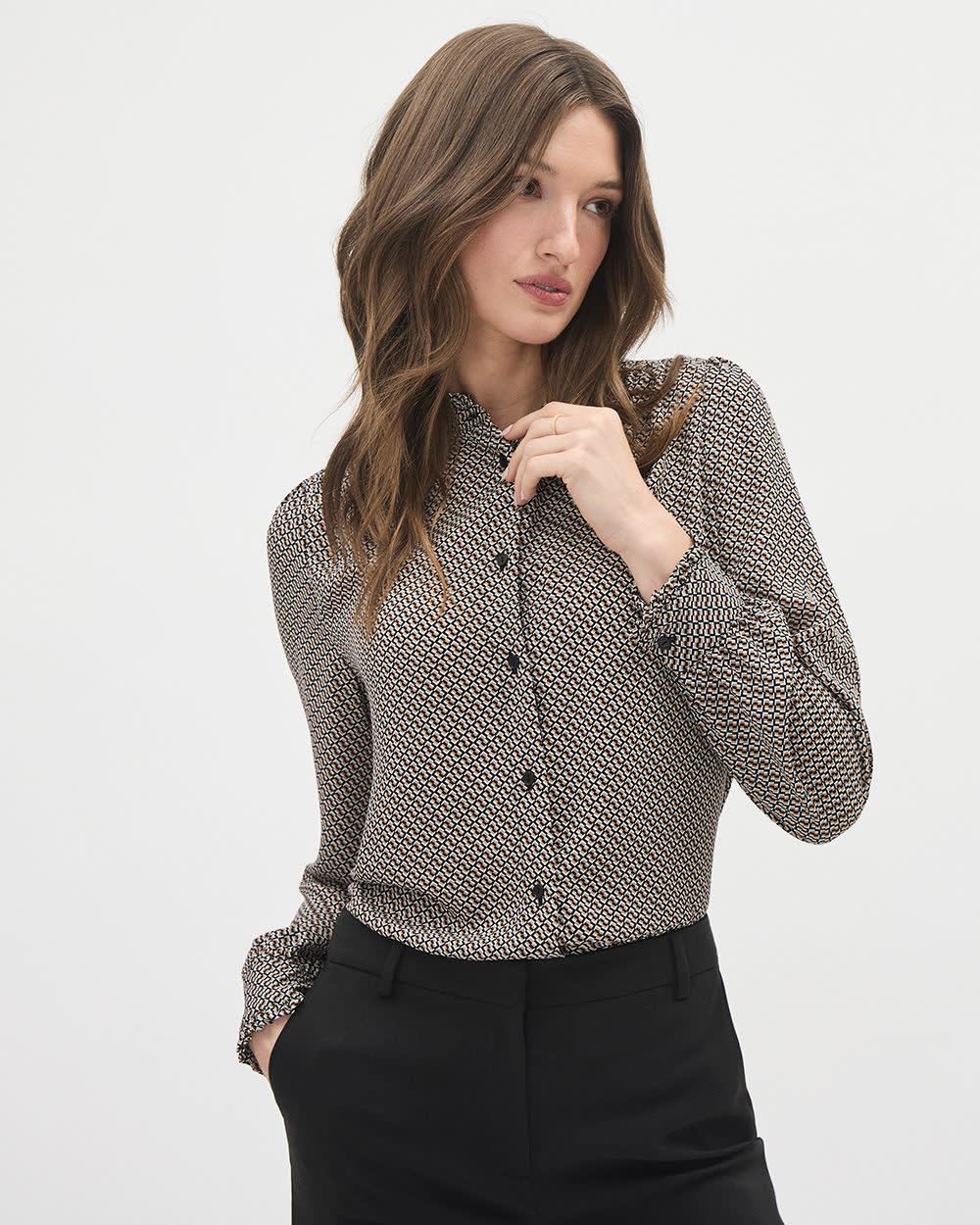 A definite essential to add to your professional wardrobe, wear this silky crepe buttoned-down blouse on its own or under a blazer for a dressier look.