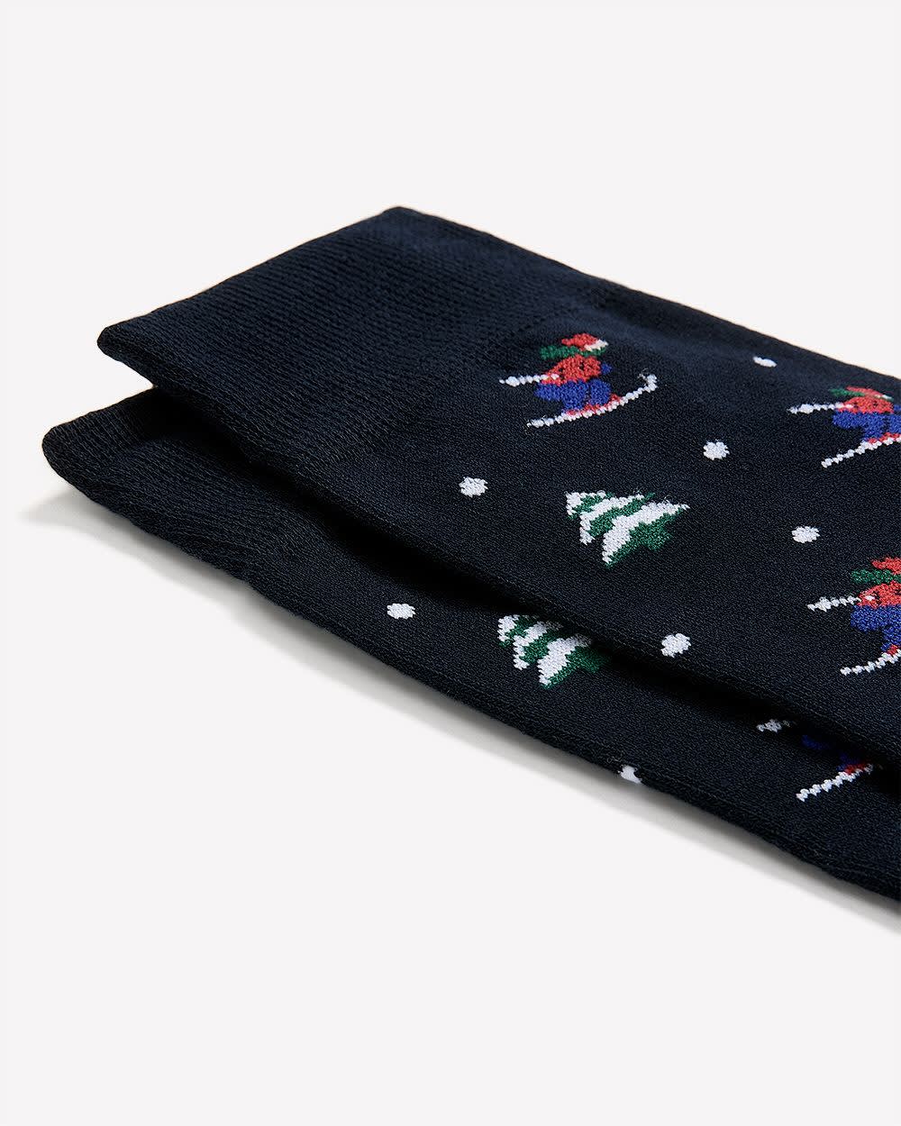 Add some personality to your outfit with these men's navy cotton-blend socks featuring tiny skiers.