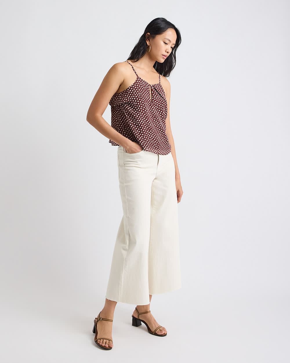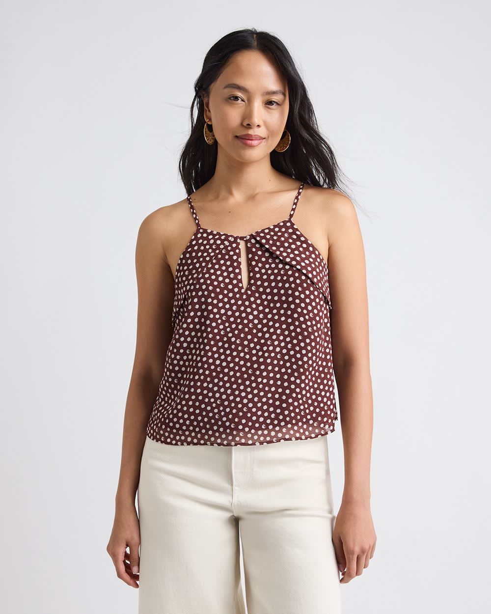 A definite must-have this summer, this sleeveless blouse made in a light chiffon fabric is just what you need to upgrade your style.