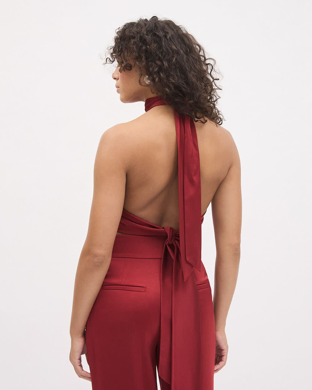 Sleeveless Halter-Neck Satin Cocktail Blouse