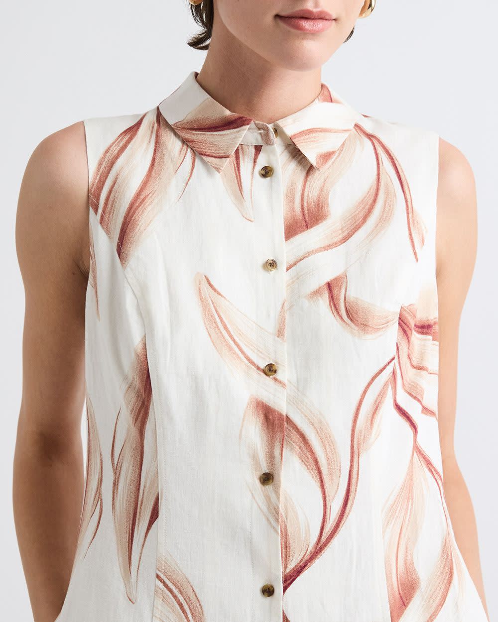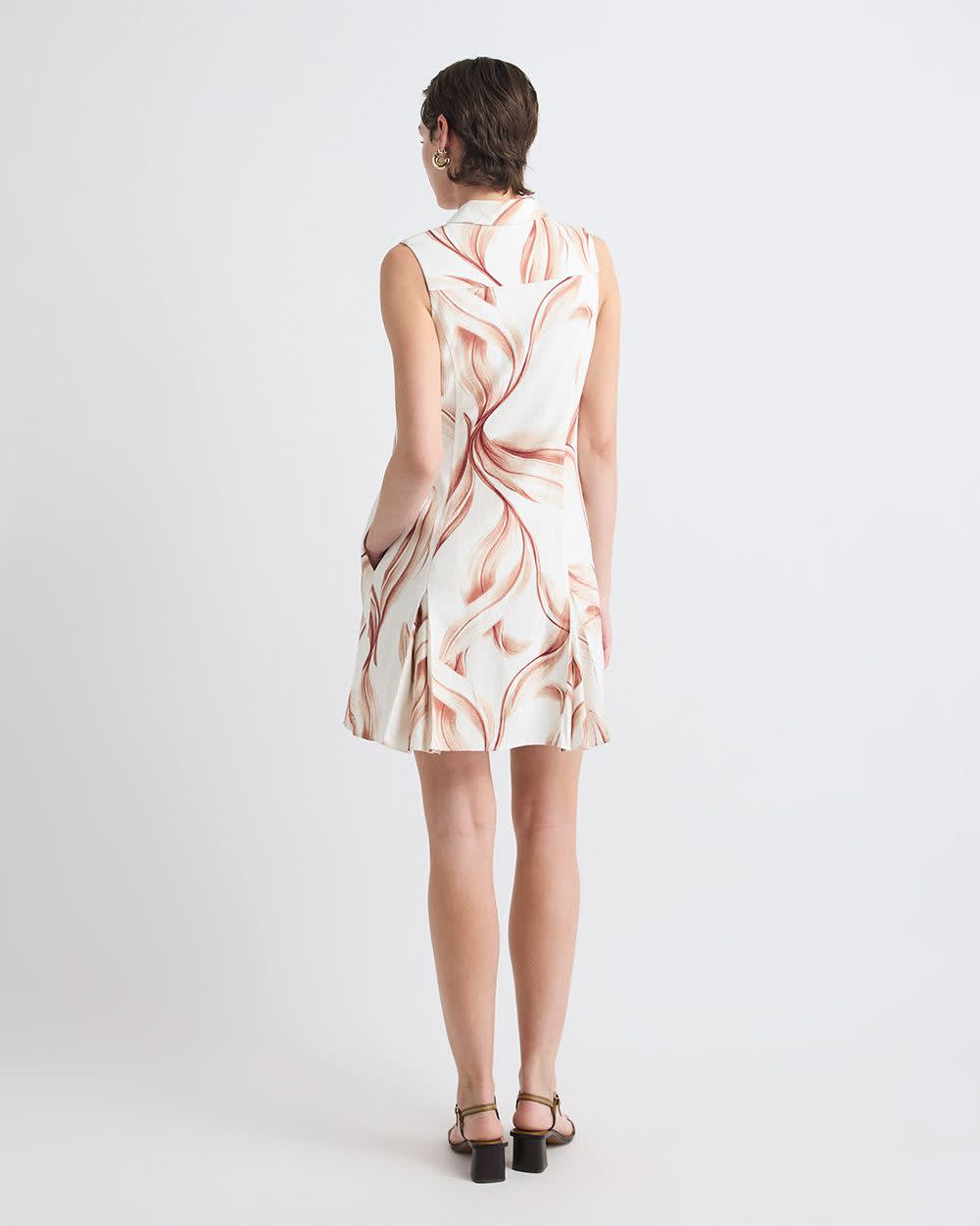 Sleeveless Linen-Blend Mini Dress with Shirt Collar