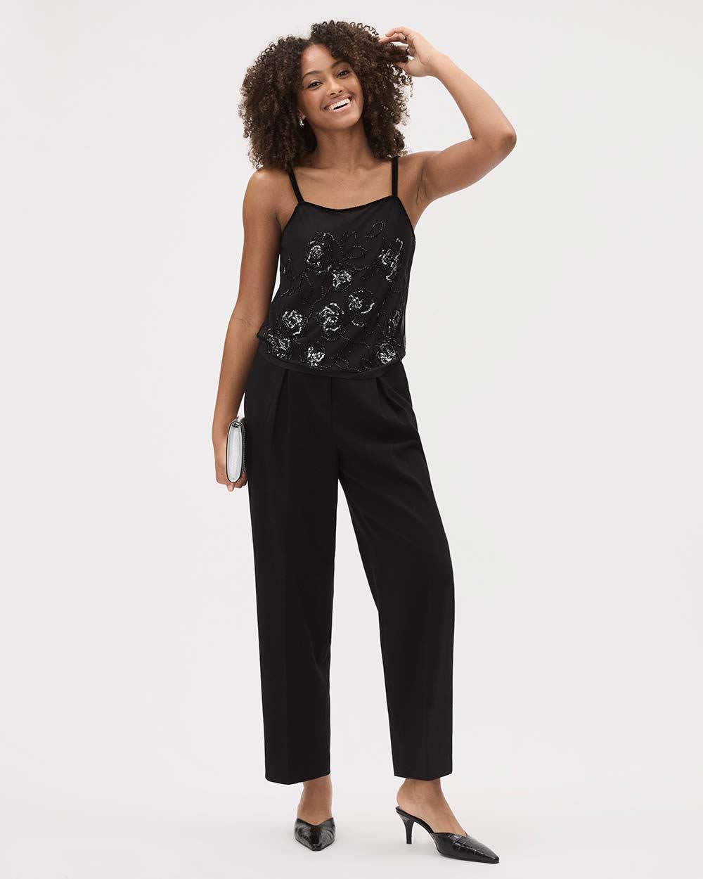 This sleeveless top decorated with shiny sequins and featuring an elegant square neckline is sure to elevate your style. A must-have for any festive occasion.