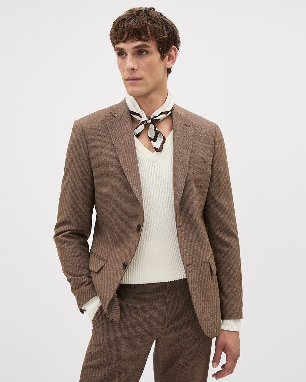 Slim-Fit Bronze Houndstooth Suit Blazer