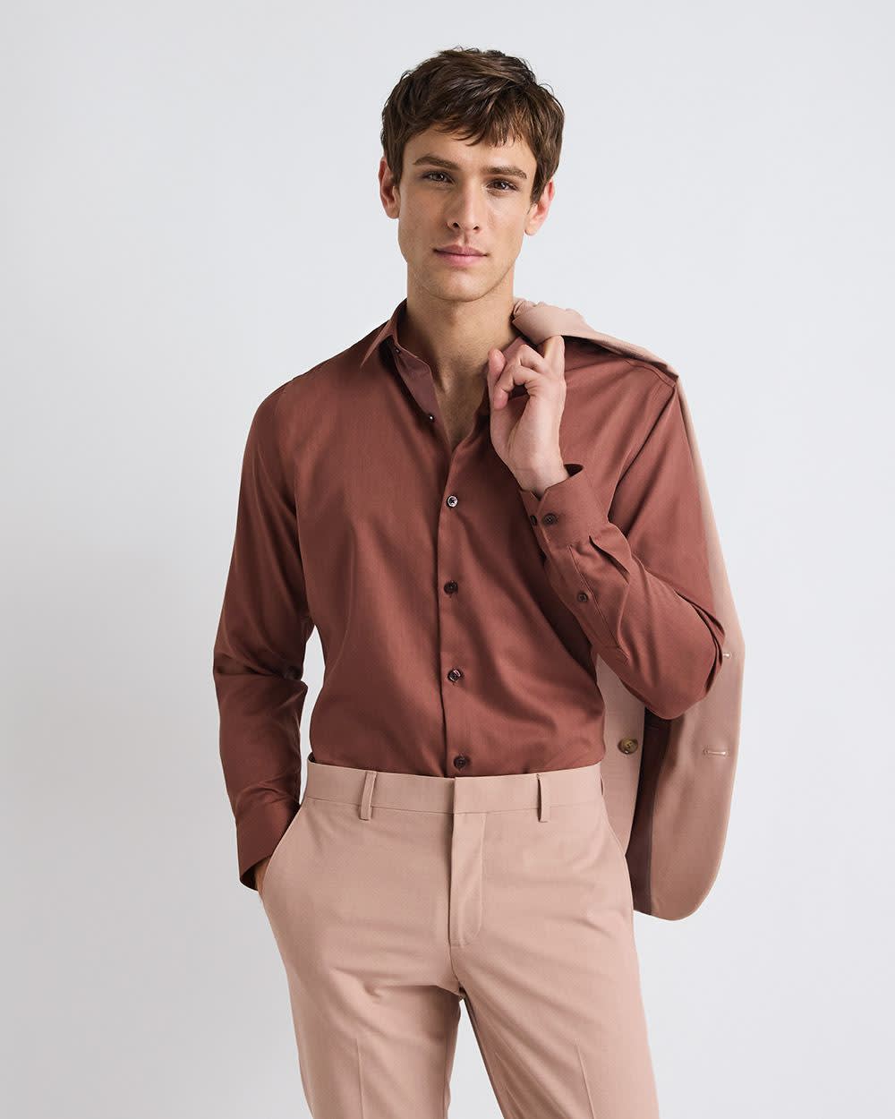Slim-Fit Solid Cotton Modal Dress Shirt