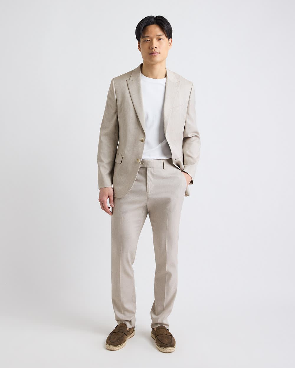 A perfect hue for summer, this stone suit pant cut in a sleek slim fit pairs perfectly with a dress shirt or a simple tee for a more casual style. Matching blazer available.