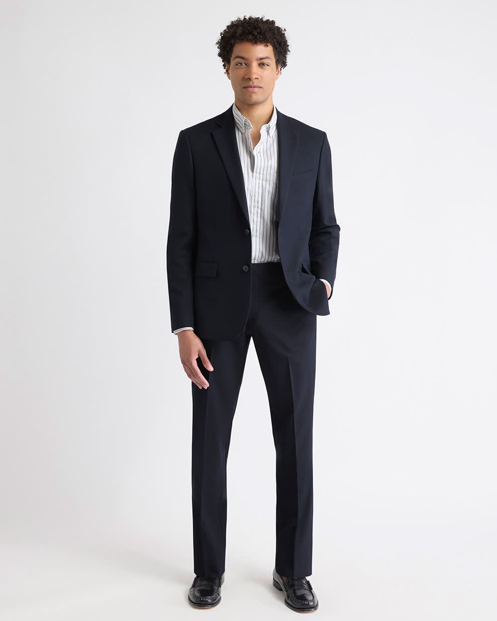 Made in a super versatile tech fabric designed to be wrinkle-free and have a great shape recovery, this suit blazer is the perfect piece to bring on a work trip. Super comfortable thanks to its ultra-stretch design, this two-button blazer will never let you down whether you want to elevate a casual outfit or complete to perfection a dressier look. An essential piece to add to your wardrobe. Matching suit pants available.