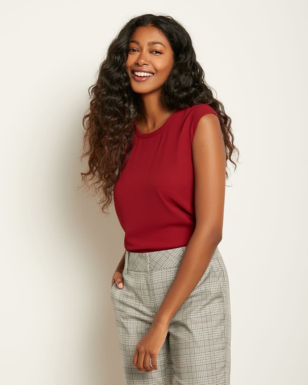 Round-neck cap-sleeved blouse, made from recycled silky crepe.