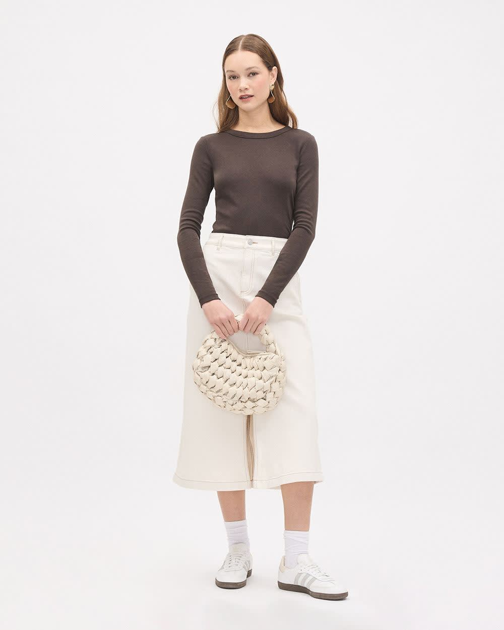 Solid Long-Sleeve Crew-Neck Fitted Tee