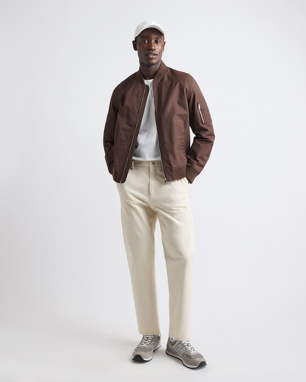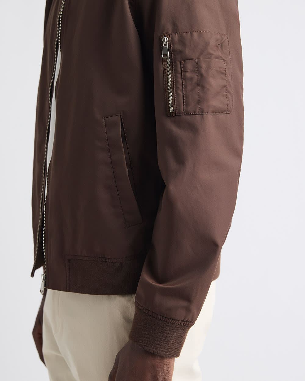 The perfect layering piece for transitional weather, add some extra style to your casual look with this solid bomber jacket.
