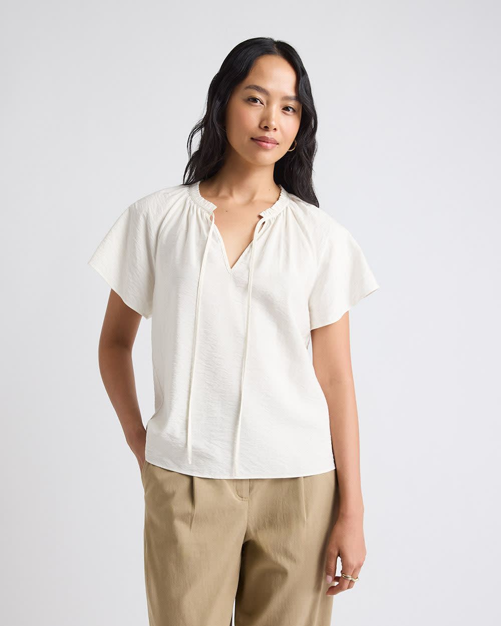 Split-Neck Blouse with Short Flutter Sleeves