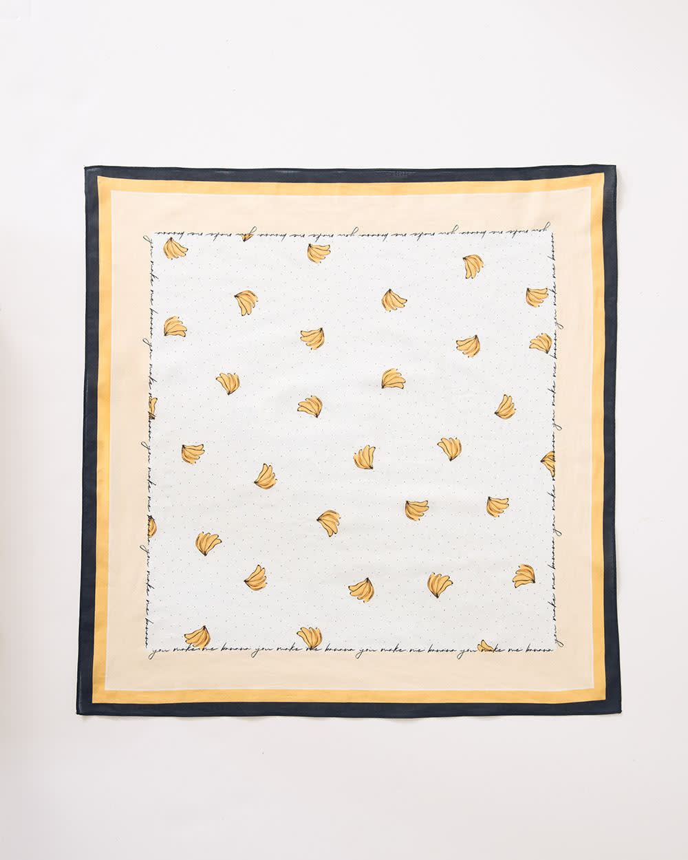 This cute square scarf decorated with a unique banana print is sure to add some style to your seasonal outfit. Made in a super-soft cotton for ultimate comfort.