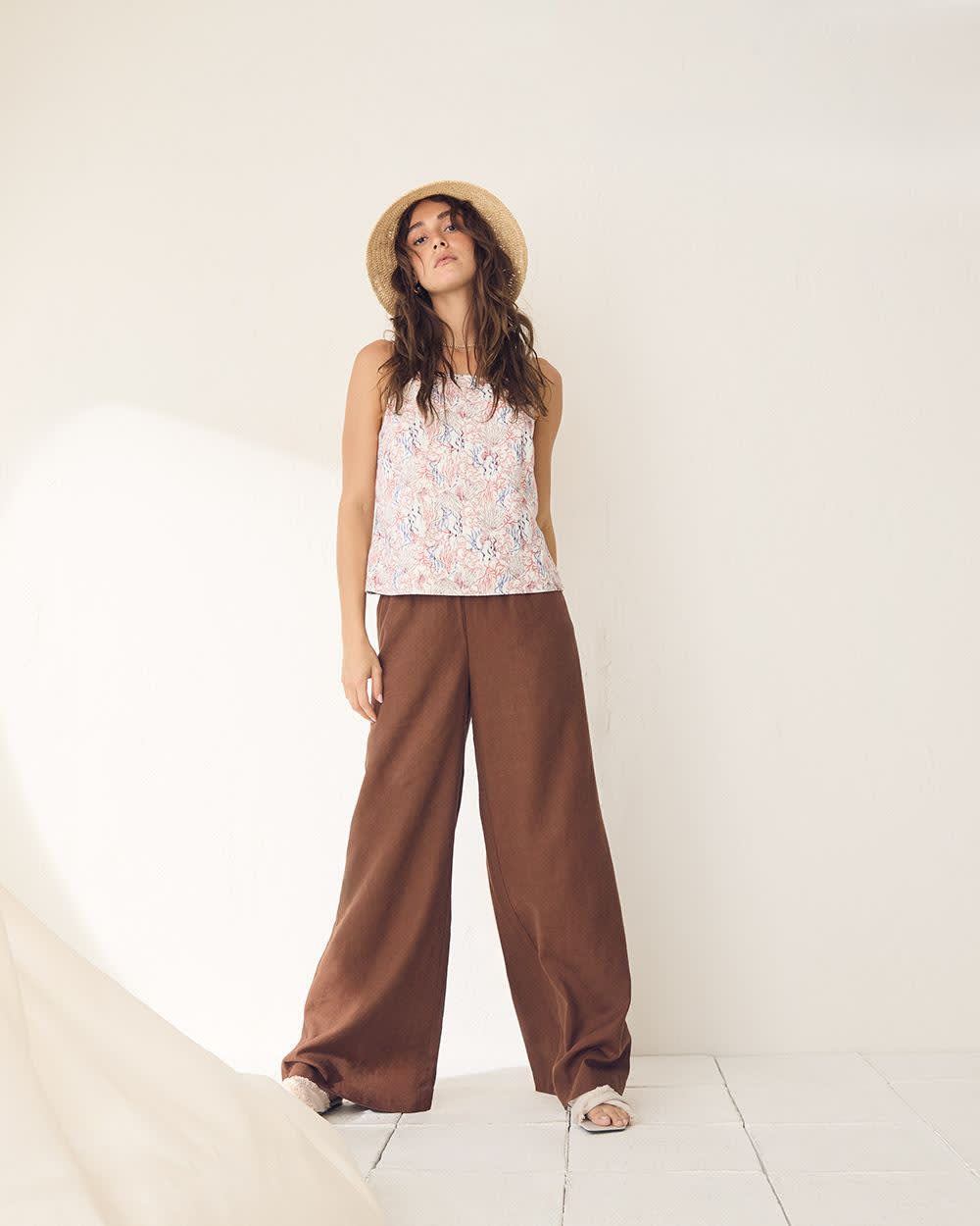 Made in a light linen blend, this feminine cami featuring a square neckline and adjustable spaghetti straps is a delicate piece perfect for the warmest and sunniest days.