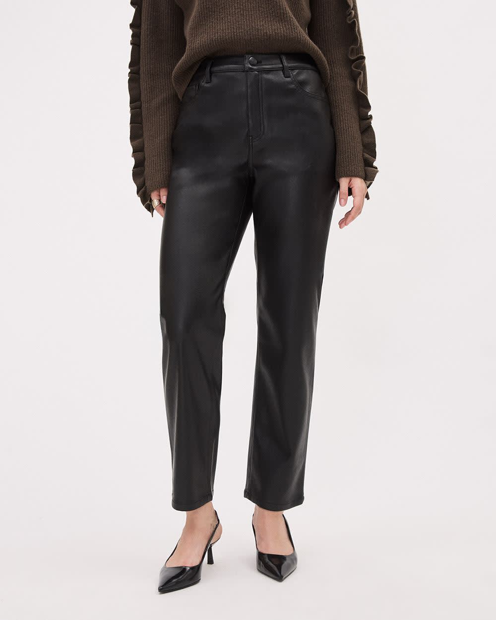 Straight-Leg High-Rise Faux Leather Pant