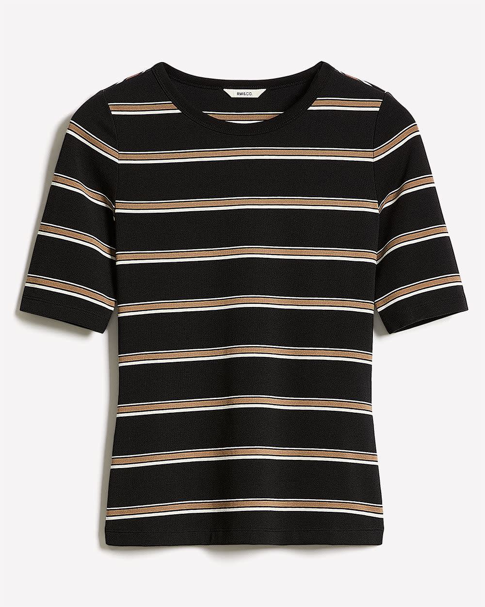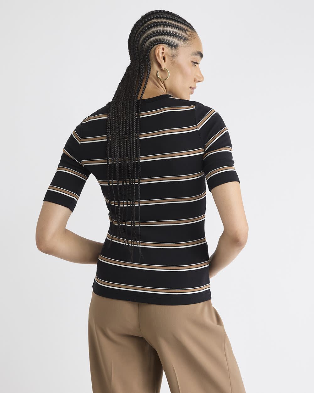 Striped Elbow-Sleeve Crew-Neck Fitted Tee