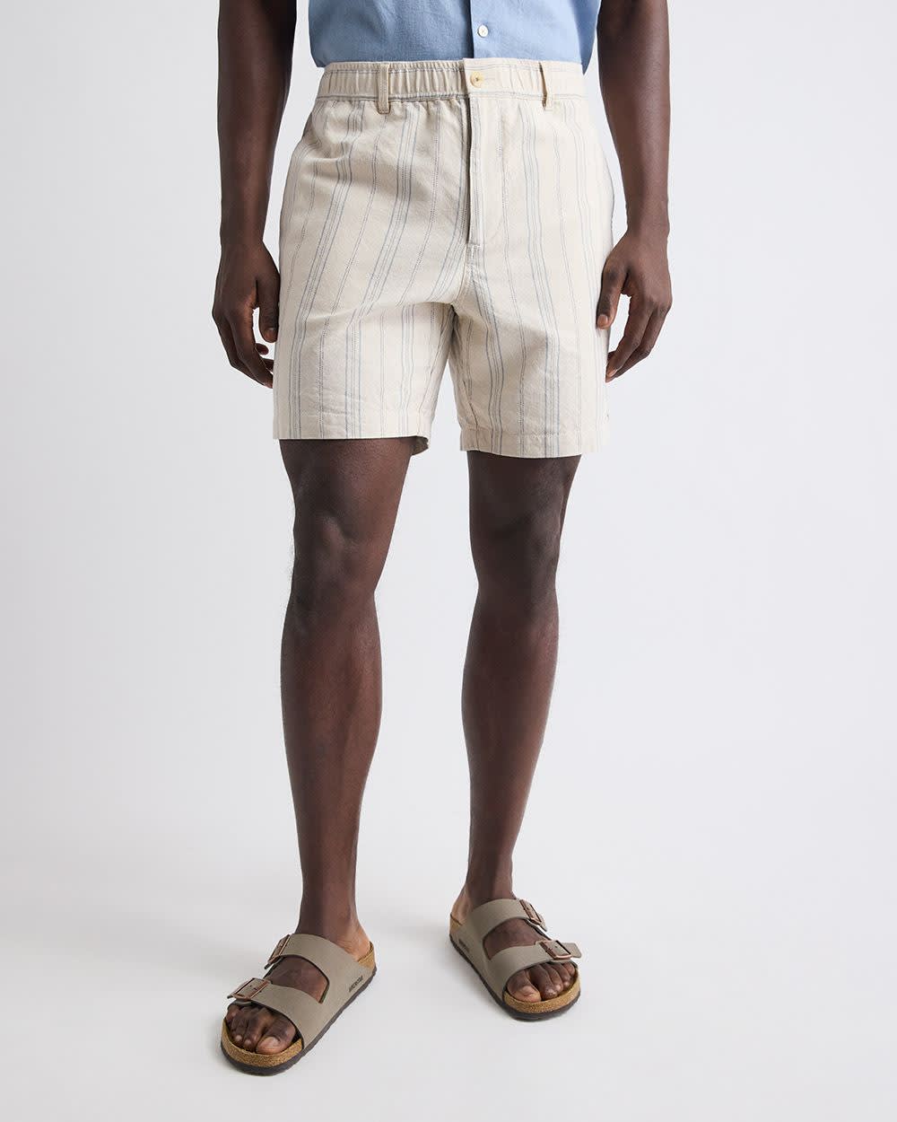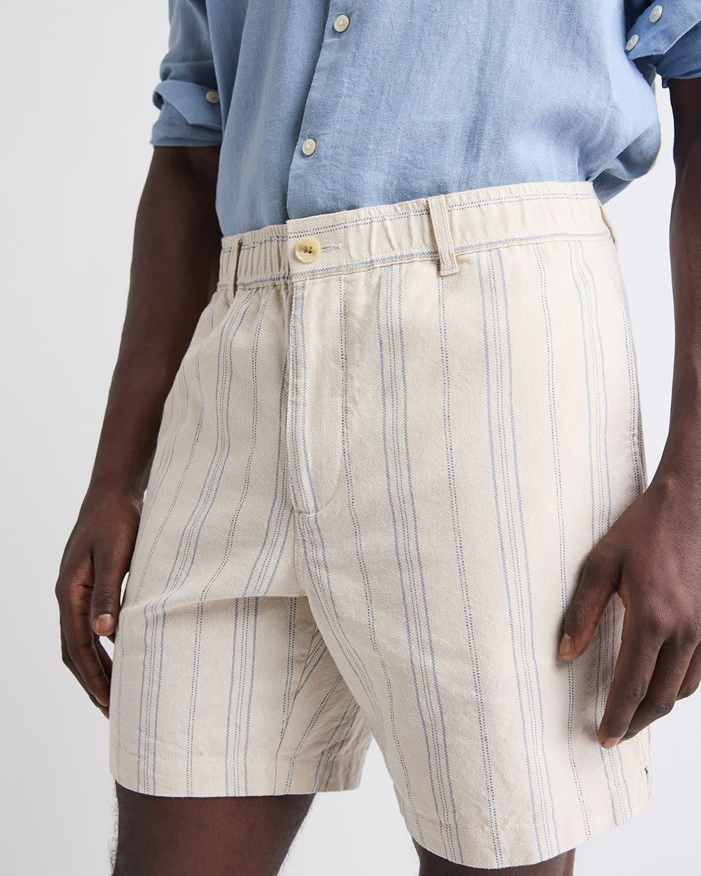 Made in a light linen and cotton blend, these striped shorts featuring a comfortable elastic waistband are a definite must-have this summer.