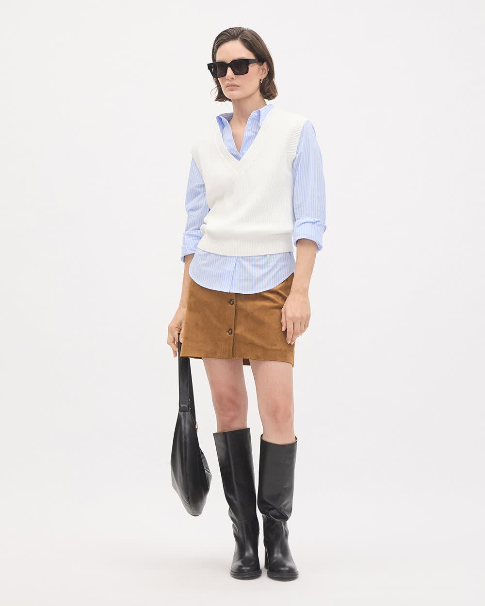 Made in a soft poplin fabric and featuring a discrete striped pattern, this buttoned-down blouse is a definite essential to add to your professional wardrobe. Wear it on its own or under a blazer for a dressier look.