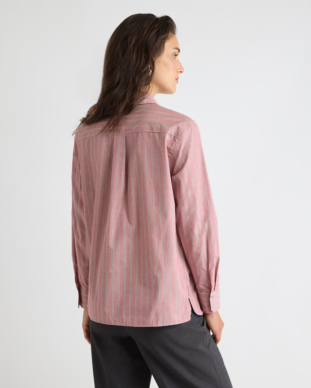 Striped Long-Sleeve Buttoned-Down Poplin Blouse