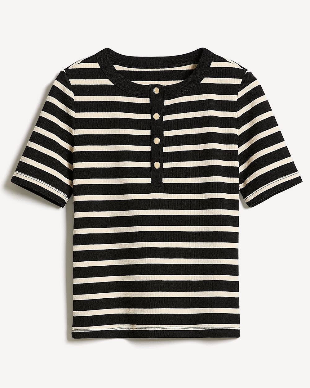 Striped Short-Sleeve Henley Ribbed Top
