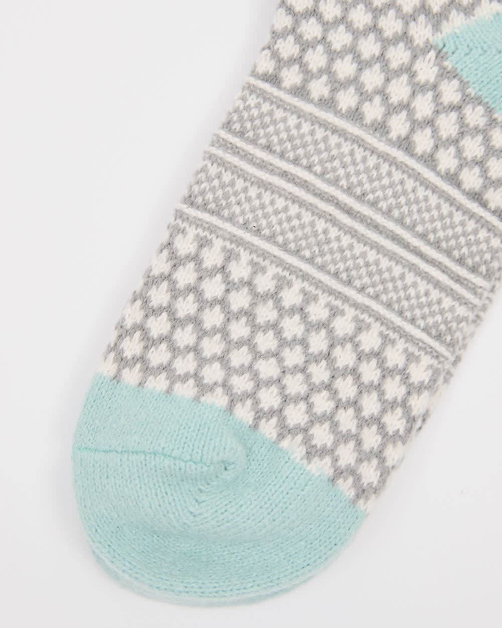 Made for the cold season, this pair of Fair Isle patterned socks made in a super-soft knit is ideal for lounging at home.