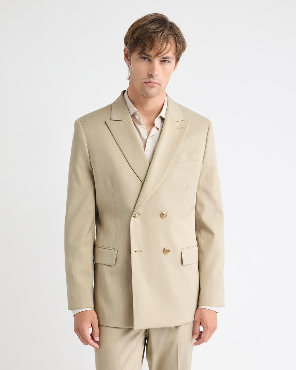 Tailored-Fit Double-Breasted Beige Suit Blazer