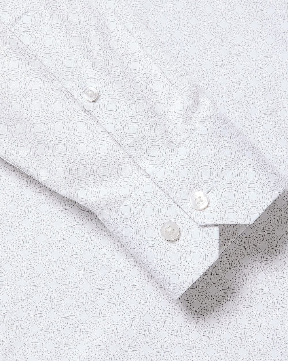 This tailored-fit dress shirt featuring a discrete yet sophisticated micro geometric pattern is sure to complement your go-to suit pants.