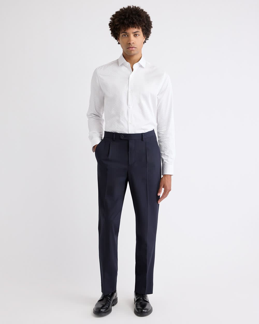 This tailored-fit dress shirt featuring a discrete yet sophisticated micro geometric pattern is sure to complement your go-to suit pants.
