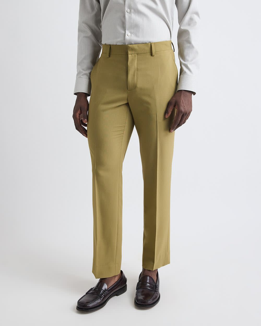Change up your everyday style by opting for this tailored-fit pant. Made in a stretch fabric and designed in a unique zaatar hue, this suit pant will provide you with a great style and optimal comfort throughout the day. Matching blazer available.