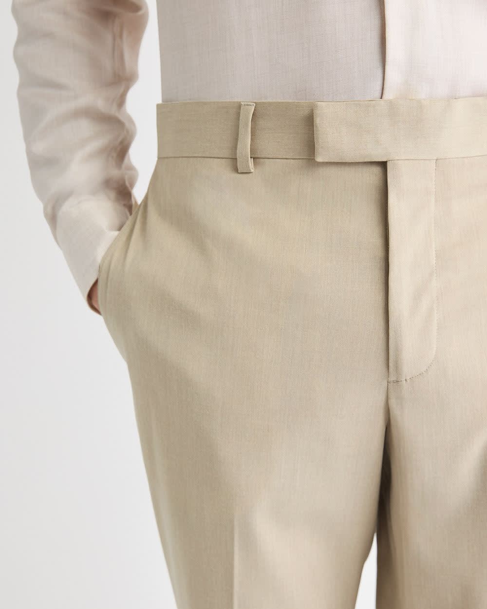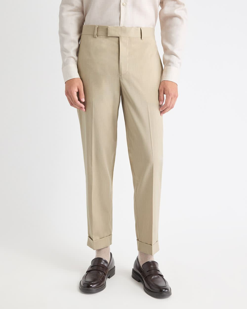Featuring trendy rolled cuffs, this tapered-leg beige pant is a timeless piece to add to your wardrobe, perfect for both formal and smart-casual occasions. Matching blazer available.