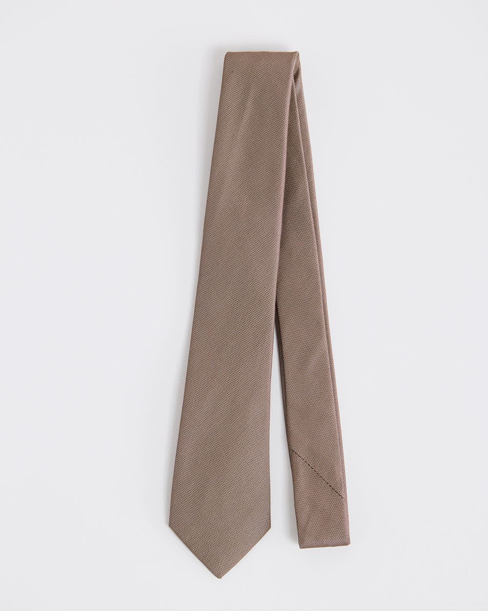 Elevate your look with this regular taupe silk-blend tie featuring a textured finish.