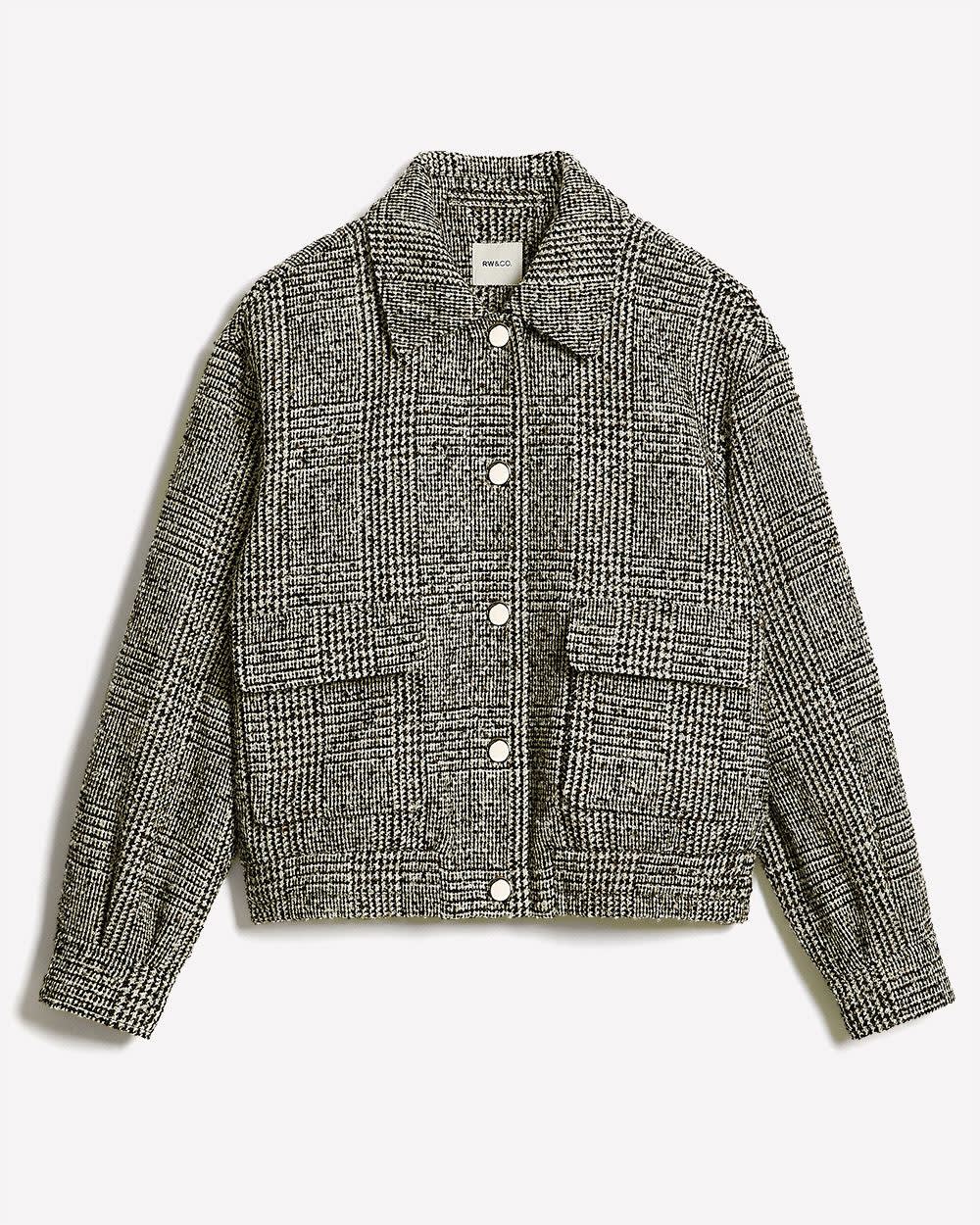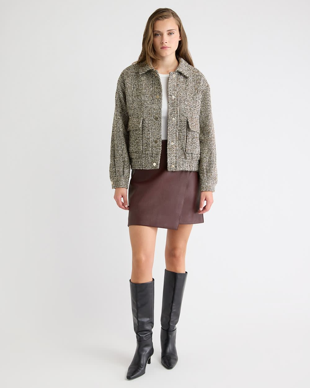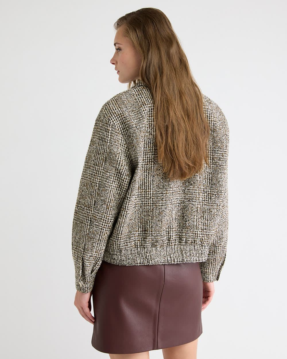 The perfect layering piece for transitional weather, add some extra style to your casual look with this tweed bomber jacket made in a cozy bouclé fabric.