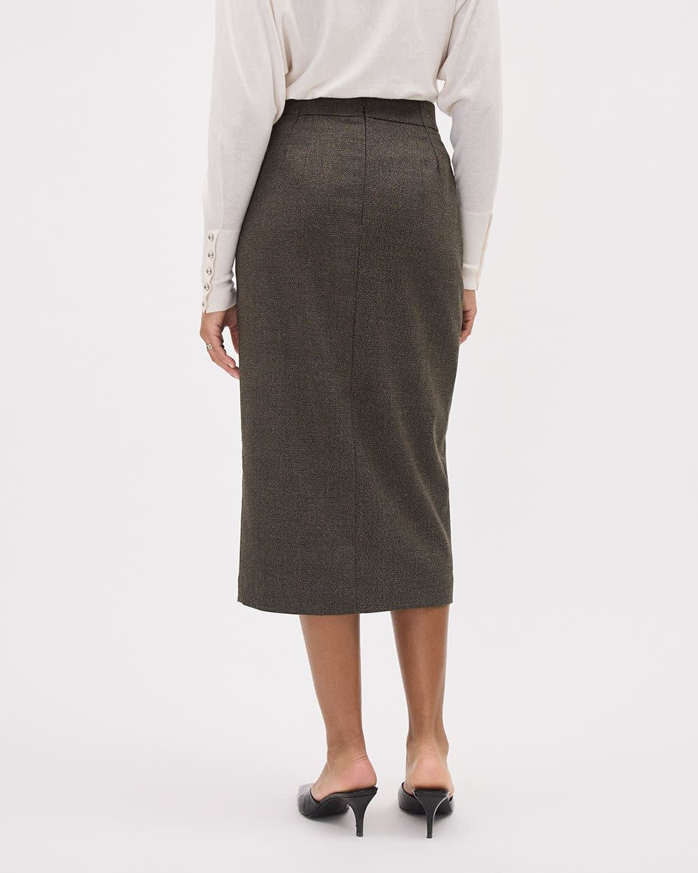 This pencil midi skirt made in versatile tweed is a great addition to your seasonal wardrobe. With its comfortable high-rise and trendy faux wrap detail, this piece will instantly add style and elegance to your everyday look. Matching blazer available.