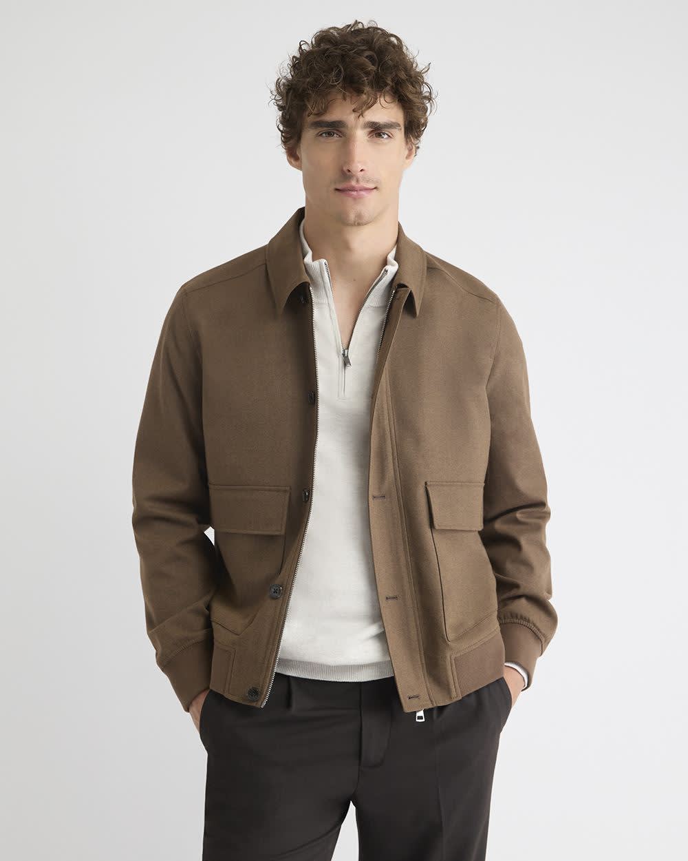 Twill Bomber Jacket with Shirt Collar