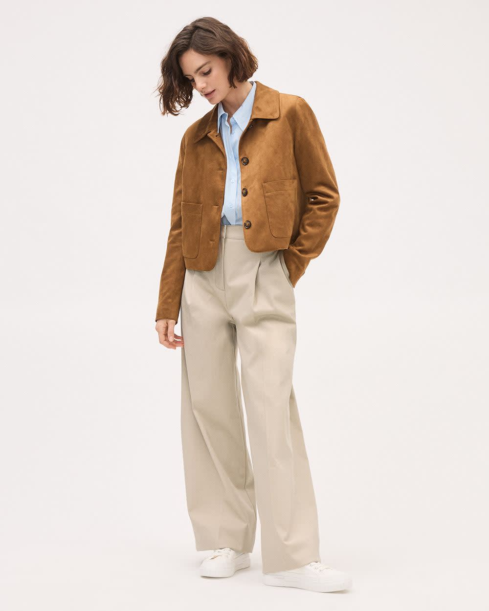 Twill High-Rise Wide-Leg Pant