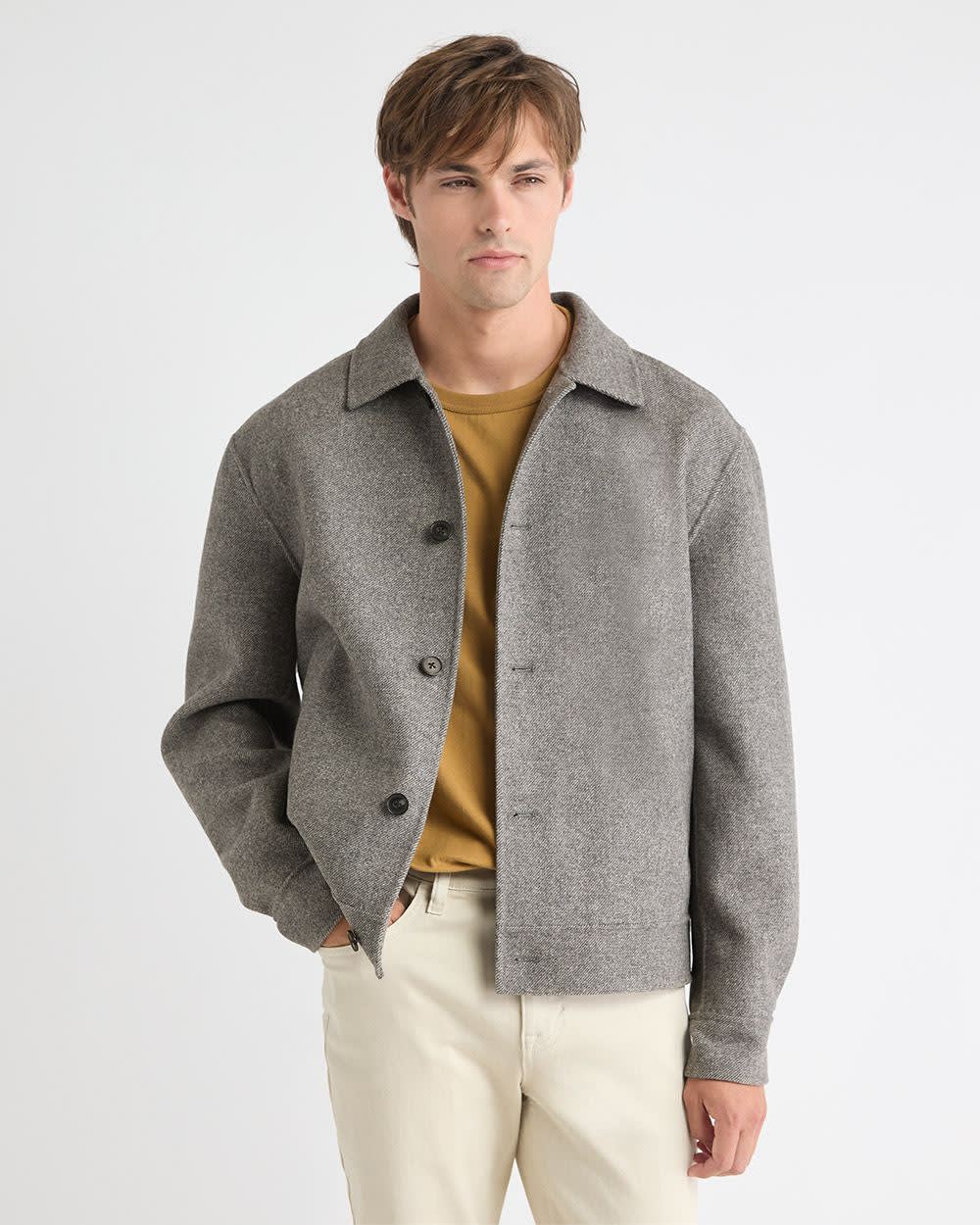 An essential piece in your wardrobe, this zipped jacket topped with a shirt collar and made of a warm and timeless wool blend, will be put to good use this fall.