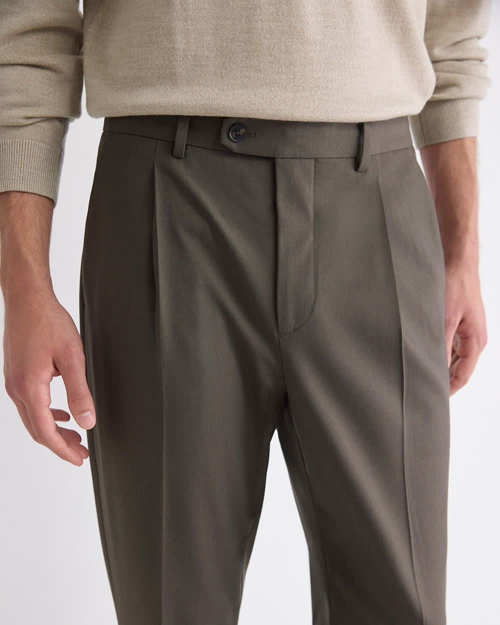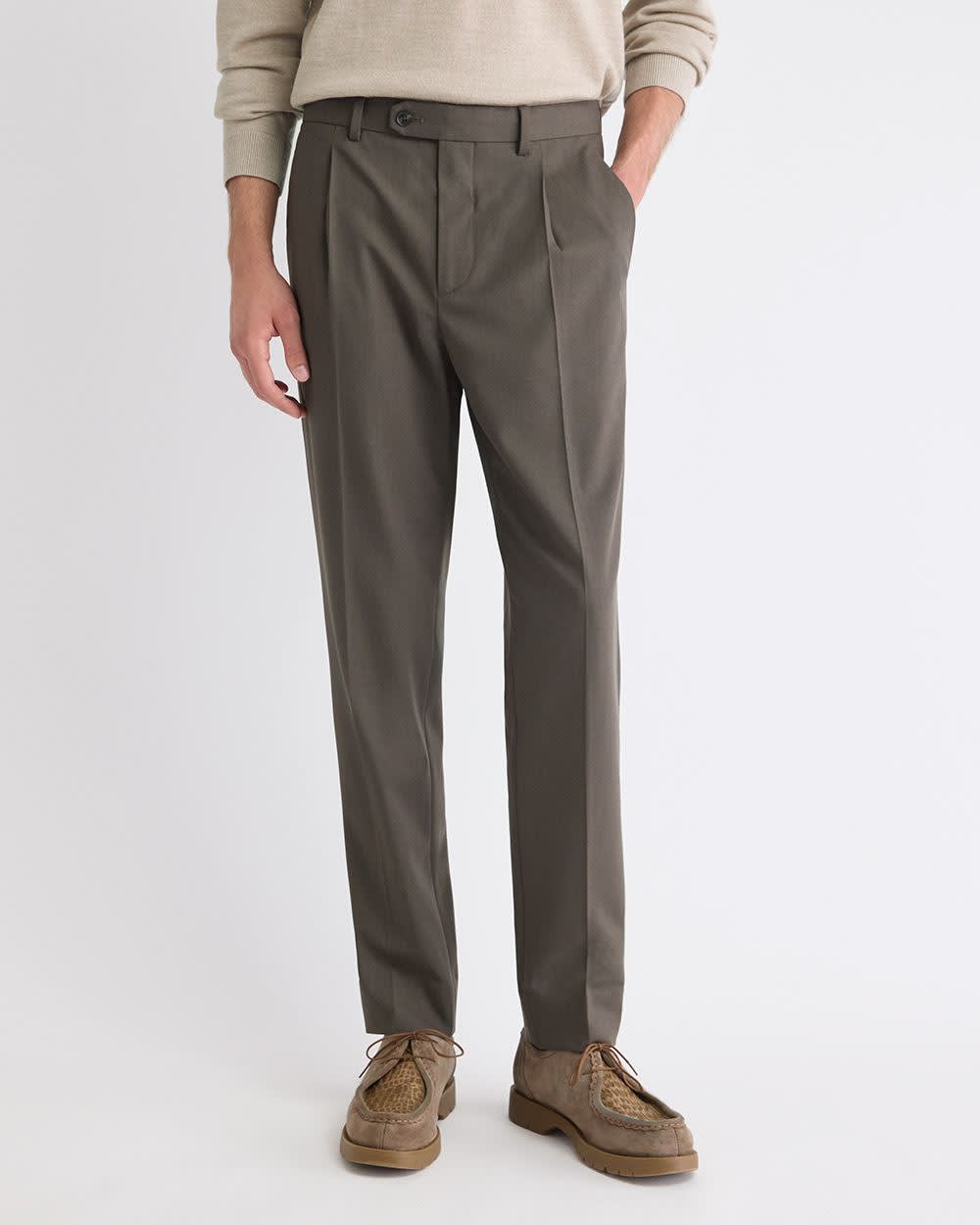 Wool-Blend Tapered-Leg Pleated Dress Pant