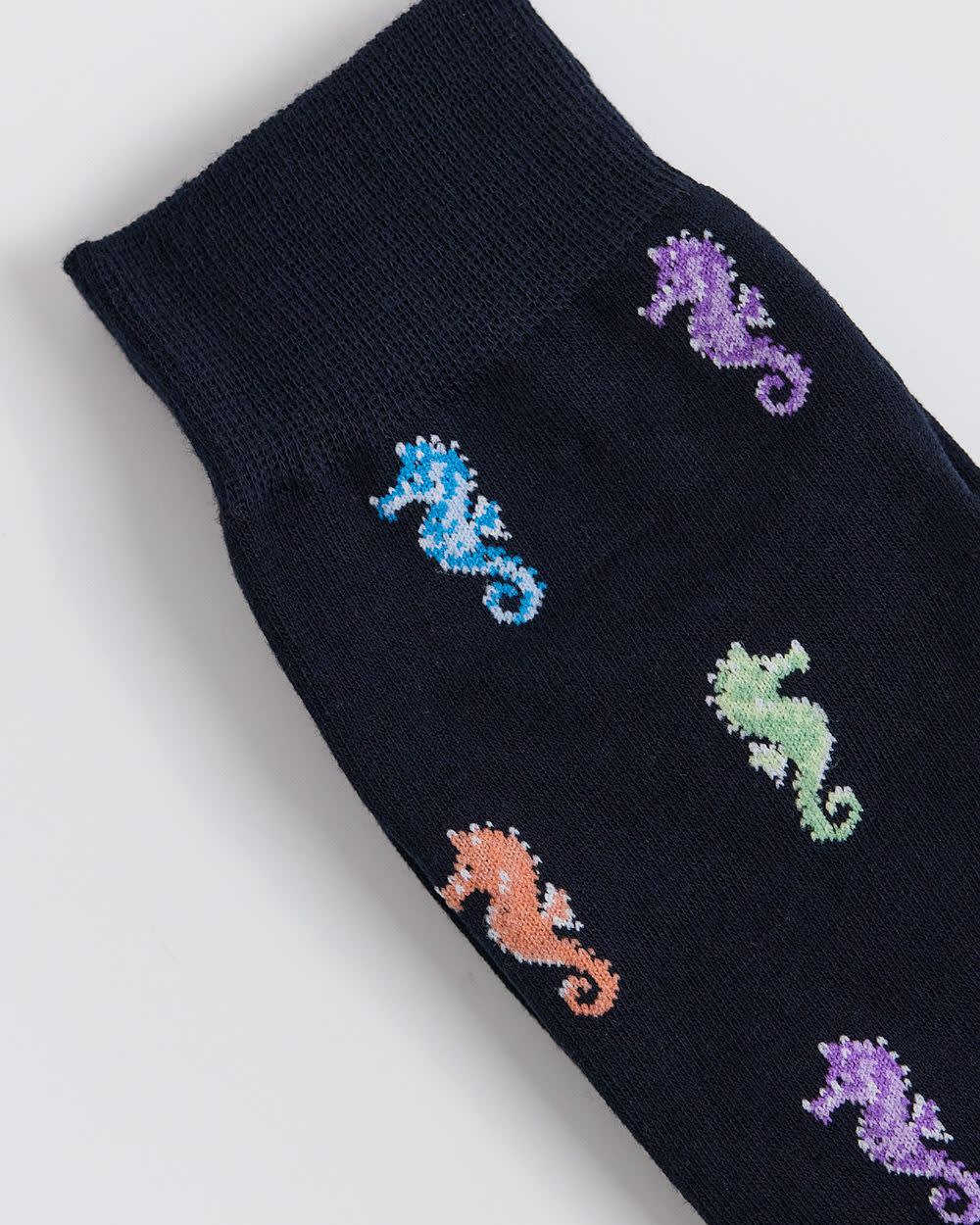 Ajoutez de la personnalité à votre tenue avec ces bas marines pour hommes en mélange de coton décorés de petits hippocampes.