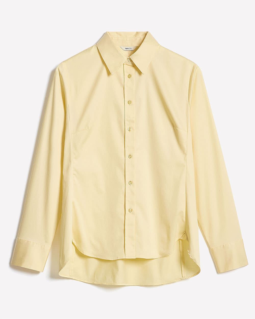 Cette élégante blouse boutonnée en popeline satinée est un essentiel à ajouter à votre garde-robe professionnelle. Portez-la seule, ou sous un veston pour un style plus habillé.