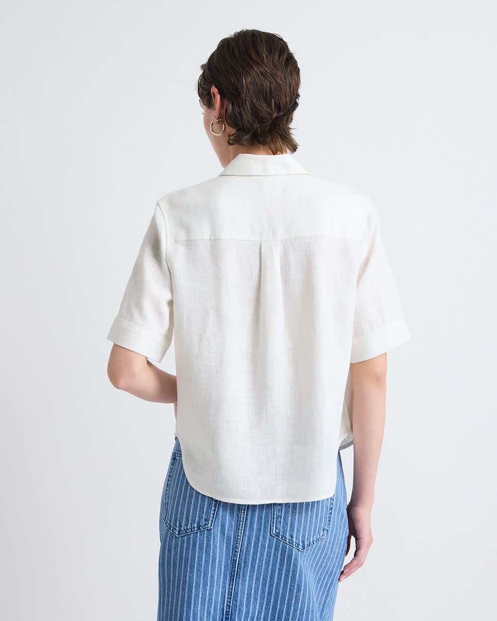 Blouse en Mélange de Lin à Manches Courtes et Col Chemisier