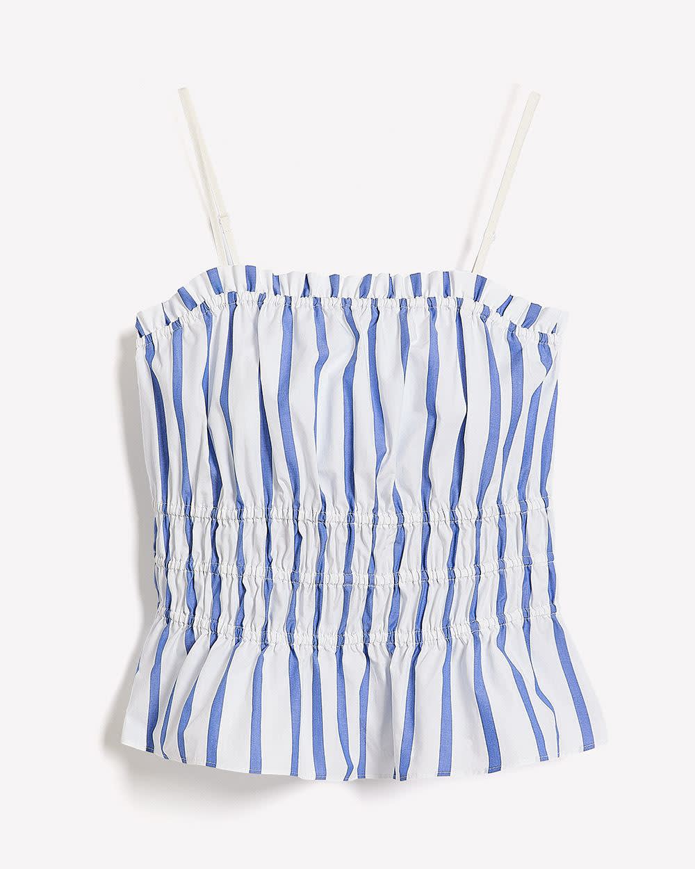Blouse Rayée Smockée Sans Manches à Col Carré en Popeline