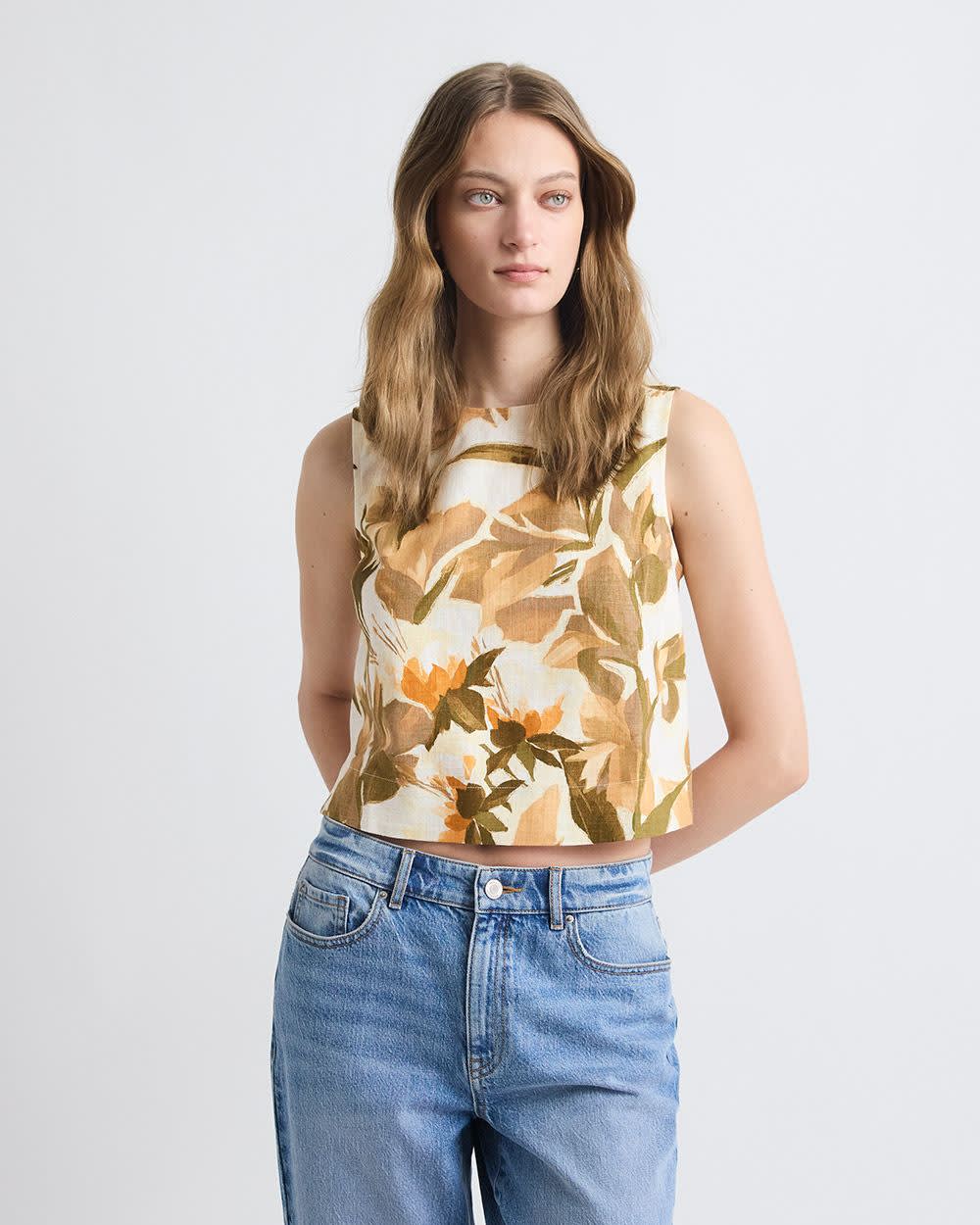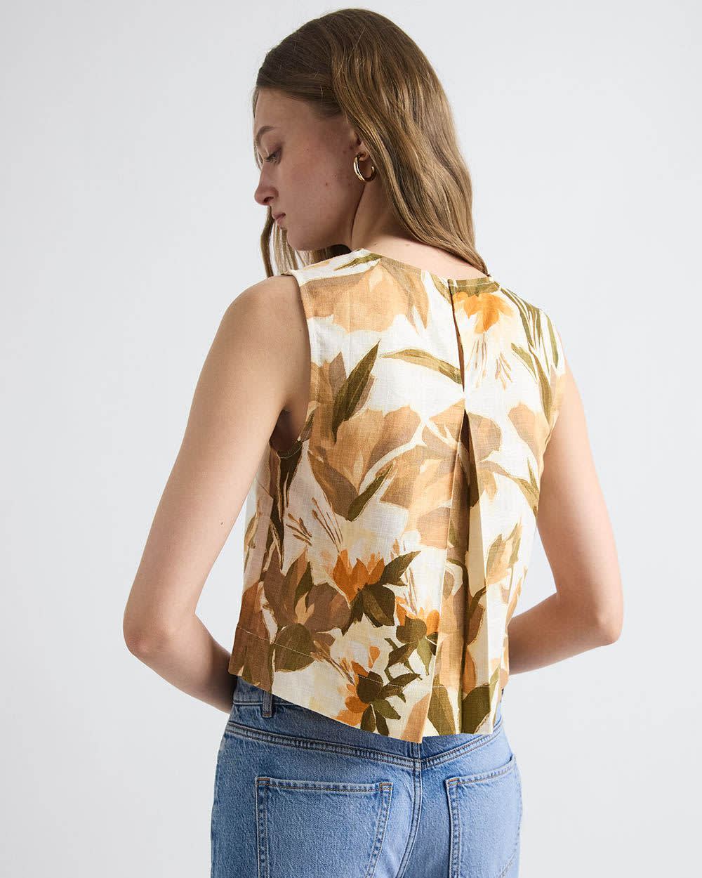 Passez en mode été avec style avec cette superbe blouse sans manches dotée d'un unique pli rond au dos et conçue dans un confortable mélange de lin.