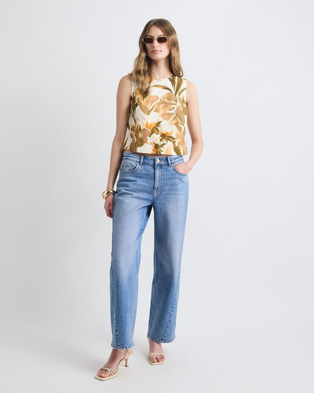 Blouse Sans Manches à Col Rond en Mélange de Lin