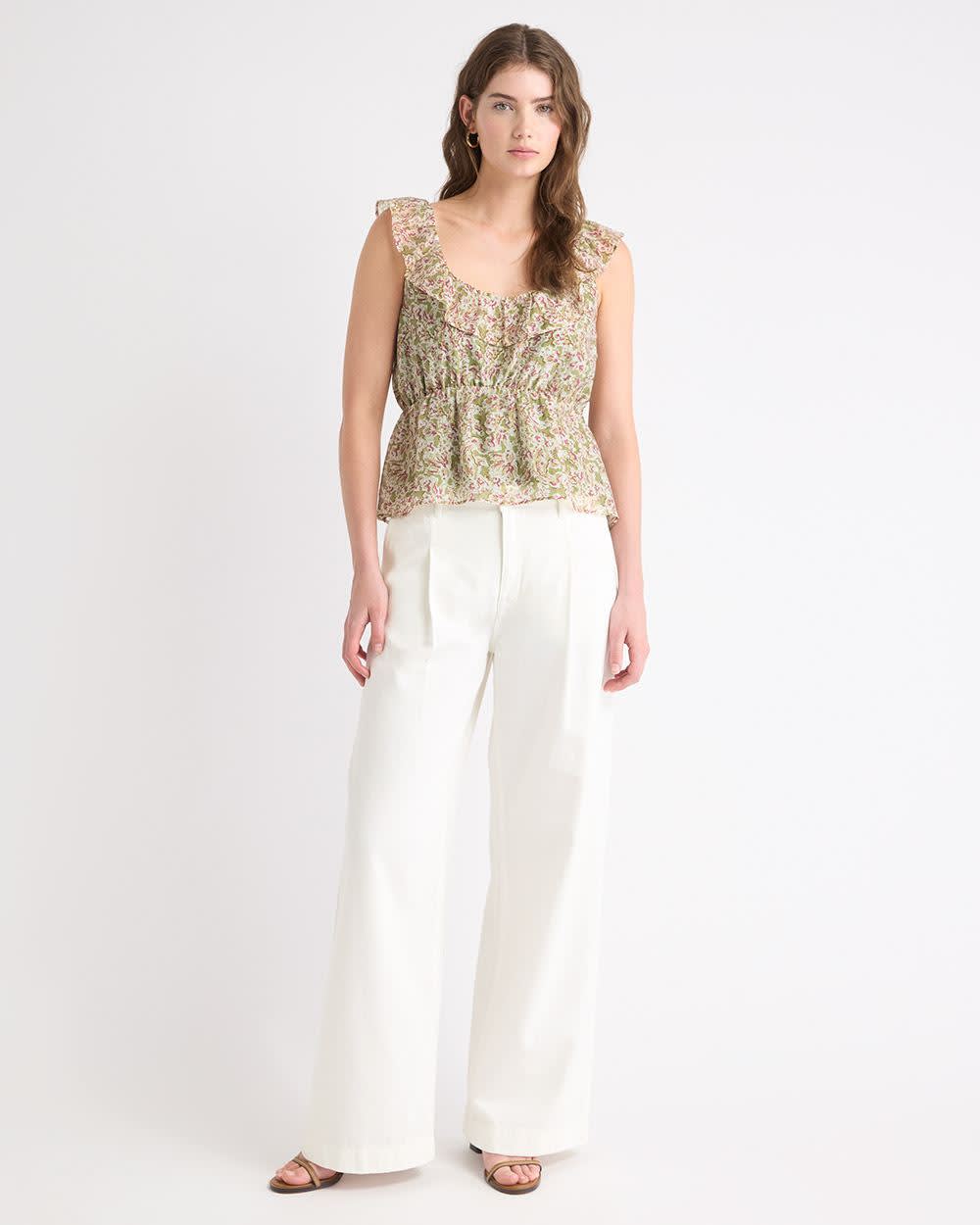 Un essentiel cet été, cette adorable blouse sans manches dotée d'une encolure en U à volants est une superbe pièce pour les plus belles journées de la saison estivale.