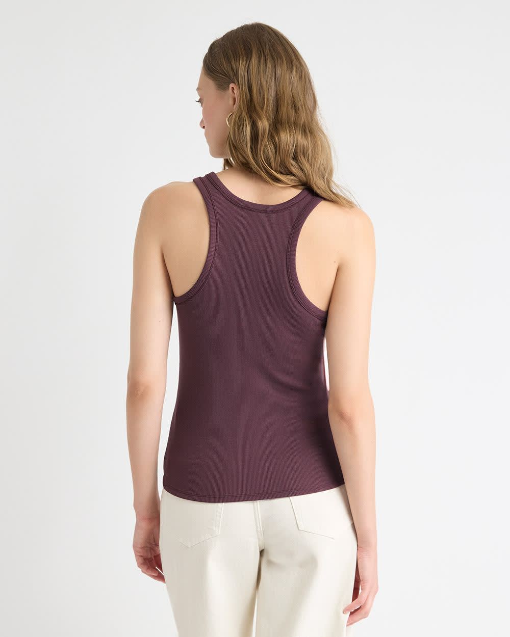 Conçue dans un tricot côtelé super doux, vous adorerez le confort douillet de cette camisole ajustée. Dotée d'un col rond et d'un dos nageur, cette camisole est un essentiel à ajouter à votre garde-robe estivale.