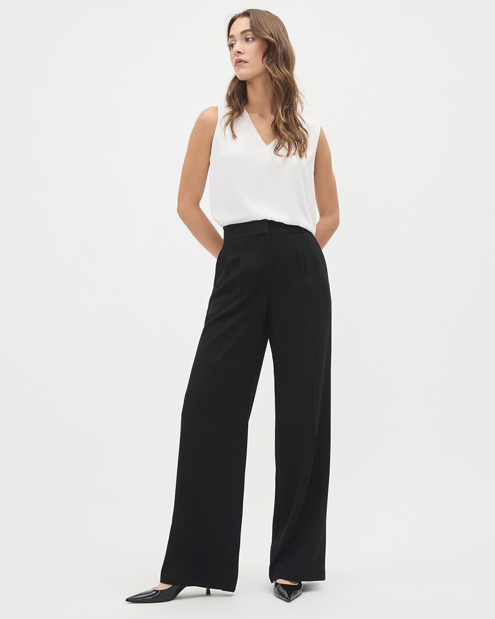 Avec son luxueux tissu crêpe soyeux fabriqué à partir de fibres recyclées, ce caraco à col en V est la pièce parfaite à porter sous votre tailleur préféré ou à associer à une jupe crayon flatteuse.