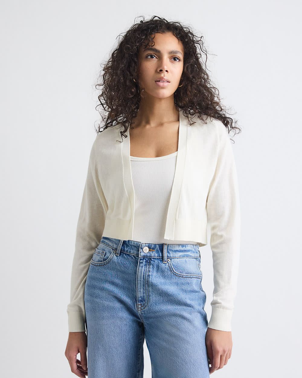 Impossible de ne pas aimer ce cardigan court à col ouvert conçu dans une polyvalente coupe classique. Fabriqué dans un tissu super doux, enfilez ce cardigan à manches longues lorsque la température se rafraîchit en soirée.