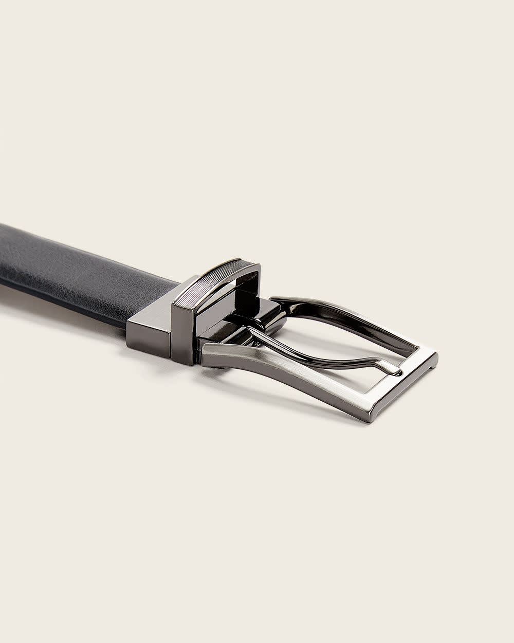 Complétez votre look avec cette pratique ceinture en cuir végétalien extensible réversible et boucle en métal brossé.