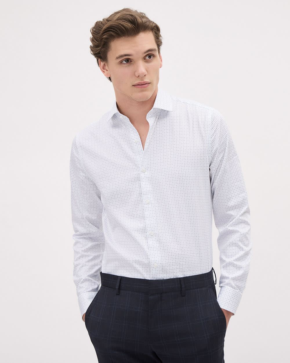 Cette chemise habillée à coupe étroite rehaussée d'un micro imprimé géométrique à la fois discret et sophistiqué saura compléter votre style à la perfection.