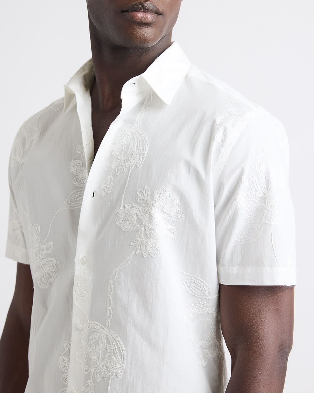 Chemise Habillée à Coupe Ajustée à Manches Courtes avec Motif Fleuri Brodé