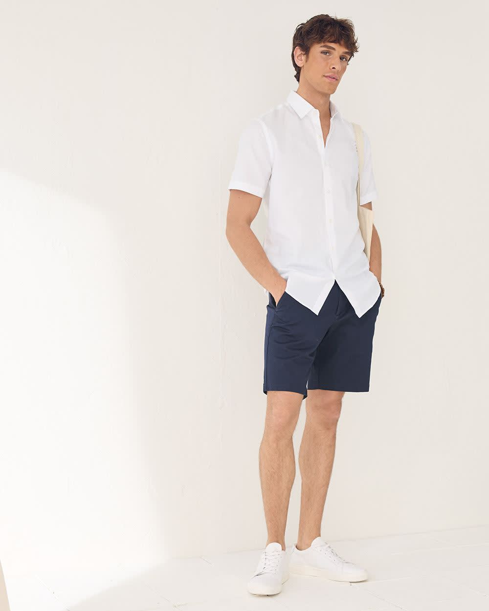 Chemise Habillée à Coupe Ajustée à Manches Courtes en Lin