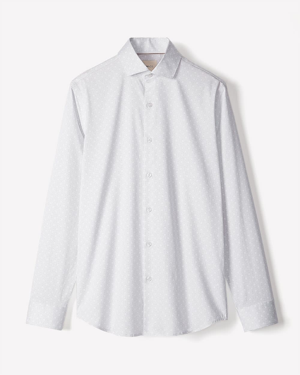 Cette chemise habillée à coupe ajustée rehaussée d'un micro imprimé géométrique à la fois discret et sophistiqué saura compléter votre style à la perfection.